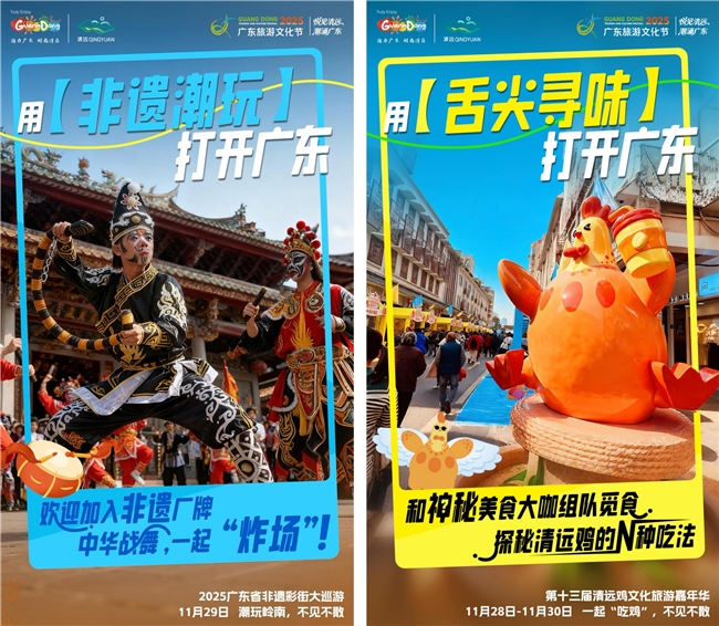 系列配套活动同样精彩纷呈:2025清远市旅游发展大会汇聚业界精英,共探文旅前沿;2025广东省非遗彩街大巡游集结全省非遗精粹,展现岭南文化活态传承;第十三届清远鸡文化旅游嘉年华与 粤菜师傅之清远一桌菜推介活动,将让游客尽享“舌尖上的广东”; 清远文旅资源考察2025广东省文化和旅游产业招商引资走进地市对接会则致力于推动“政府+企业+资本”高效对接,激发产业新动能。